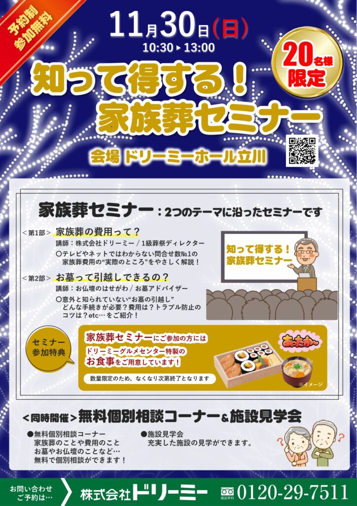 【イベント】11/30(日)知って得する家族葬セミナー:ドリーミーホール立川